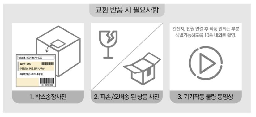( 일부 제품의 경우 교환, 반품 접수일이 다를 수 있습니다. 상품 정보 안내 페이지 참고 부탁드립니다 .)